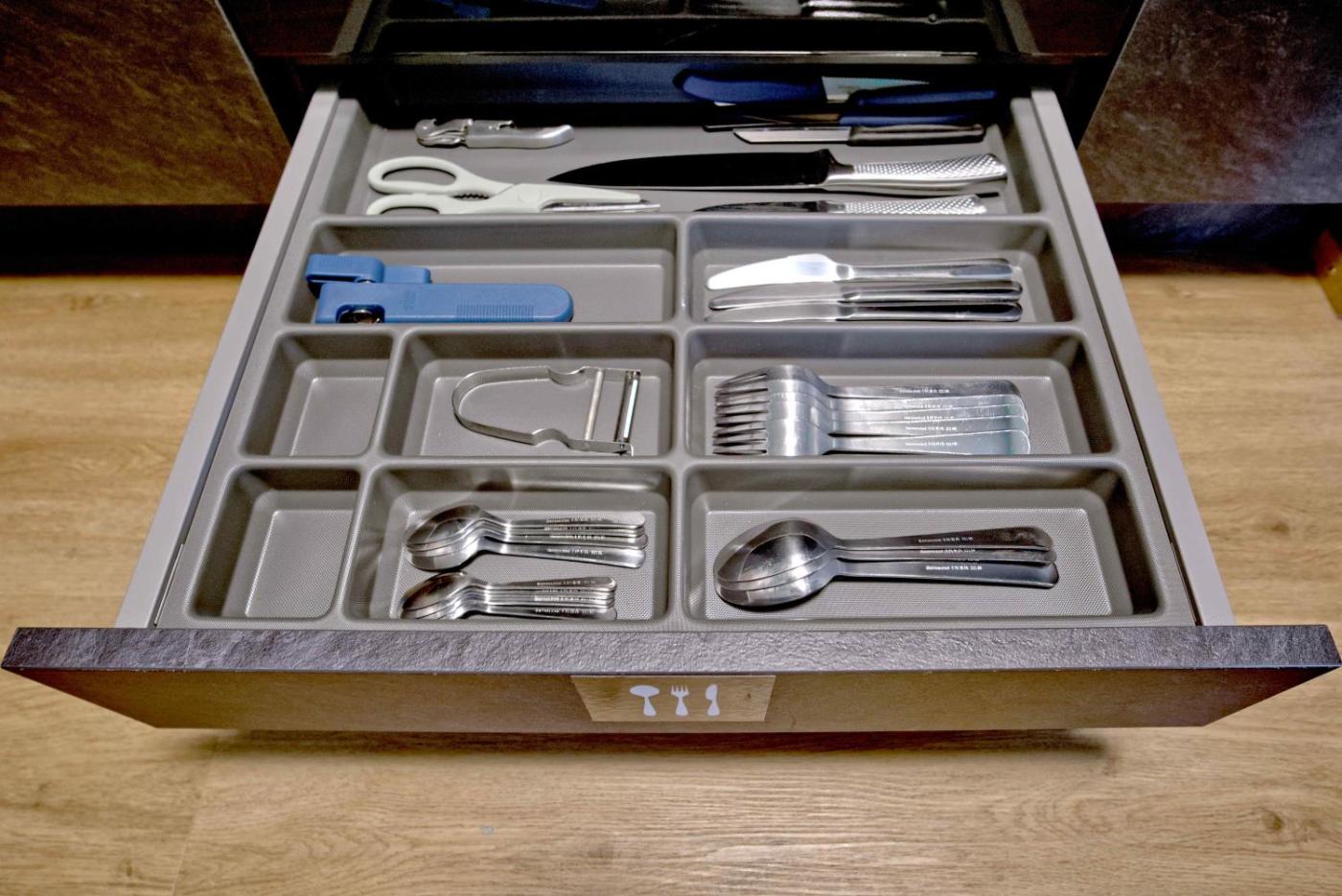Studio Apartment with One Double Bed. This air-conditioned apartment consists of 1 living room, 1 separate bedroom and 1 bathroom with a shower. The well-fitted kitchen features a stovetop, a refrigerator, a dishwasher and kitchenware. The apartment provides a flat-screen TV with streaming services, a washing machine, soundproof walls, a coffee machine as well as city views. The unit offers 1 bed.