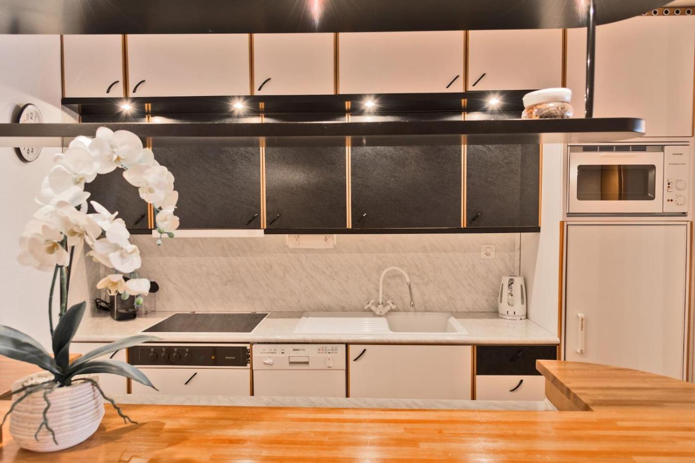 Apartment. This apartments standout feature is the sauna. This apartment is comprised of 2 bedrooms, a kitchen and 1 bathroom with a bath and a bidet. In the kitchen, guests will find a stovetop, a refrigerator, a dishwasher and kitchenware. The apartment offers a washing machine, a tea and coffee maker, a wardrobe, tumble dryer and a TV with satellite channels. The unit offers 2 beds.