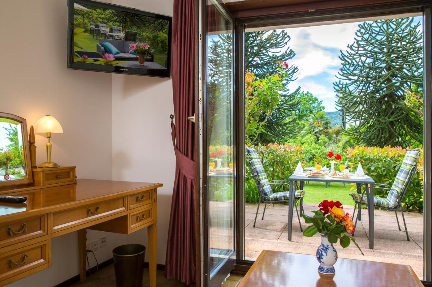 Double or Twin Room with Private Garden. Peaceful rooms facing the south, with lots of natural light and a private garden with a table and chairs. It comes with a Nespresso coffee machine, free Wi-Fi and an LCD TV. Please note that only one extra bed for a child is possible in this room. ;